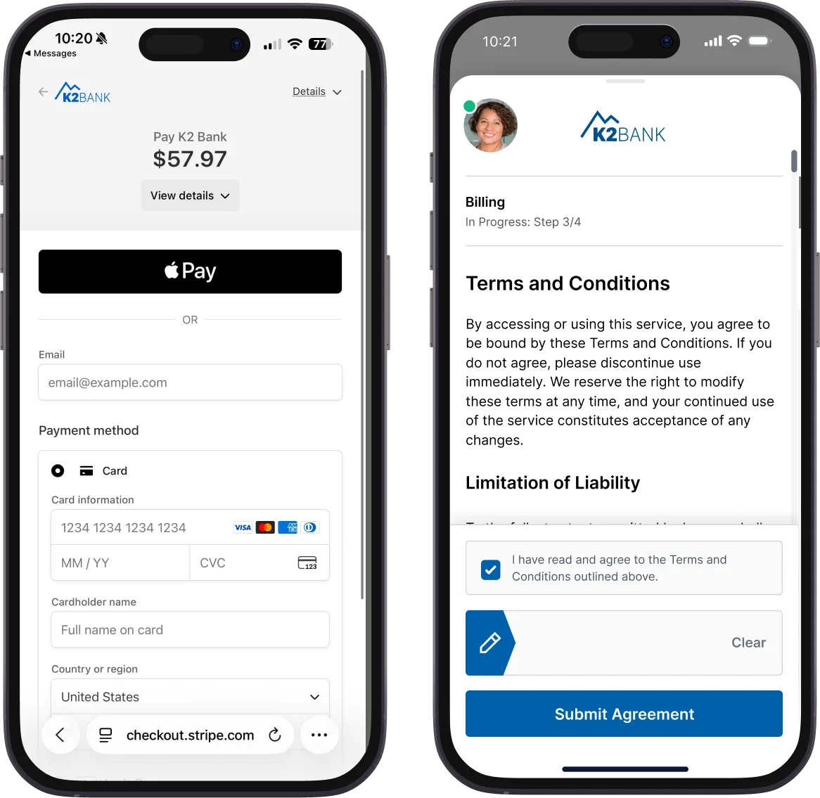 Payments are rarely the only step. Add signatures, forms, document capture, and identity verification to complete end-to-end workflows without rebuilding your experience or exposing sensitive inputs.